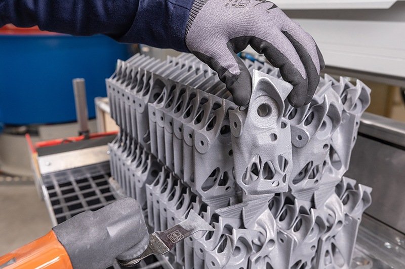 El grado en que la fabricación aditiva puede utilizarse en la producción de piezas se determinó en las primeras etapas del desarrollo del vehículo. Tanto los ingenieros como los expertos en materiales y producción examinaron cientos de componentes, centrándose en los beneficios económicos de la nueva tecnología y en las ventajas de peso y geometría en comparación con las piezas fabricadas convencionalmente.